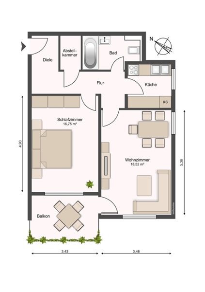 | Balkon/Terrasse Fläche | 5 m² |